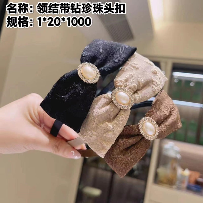 Bow tie with diamond - studded pearl head buckle