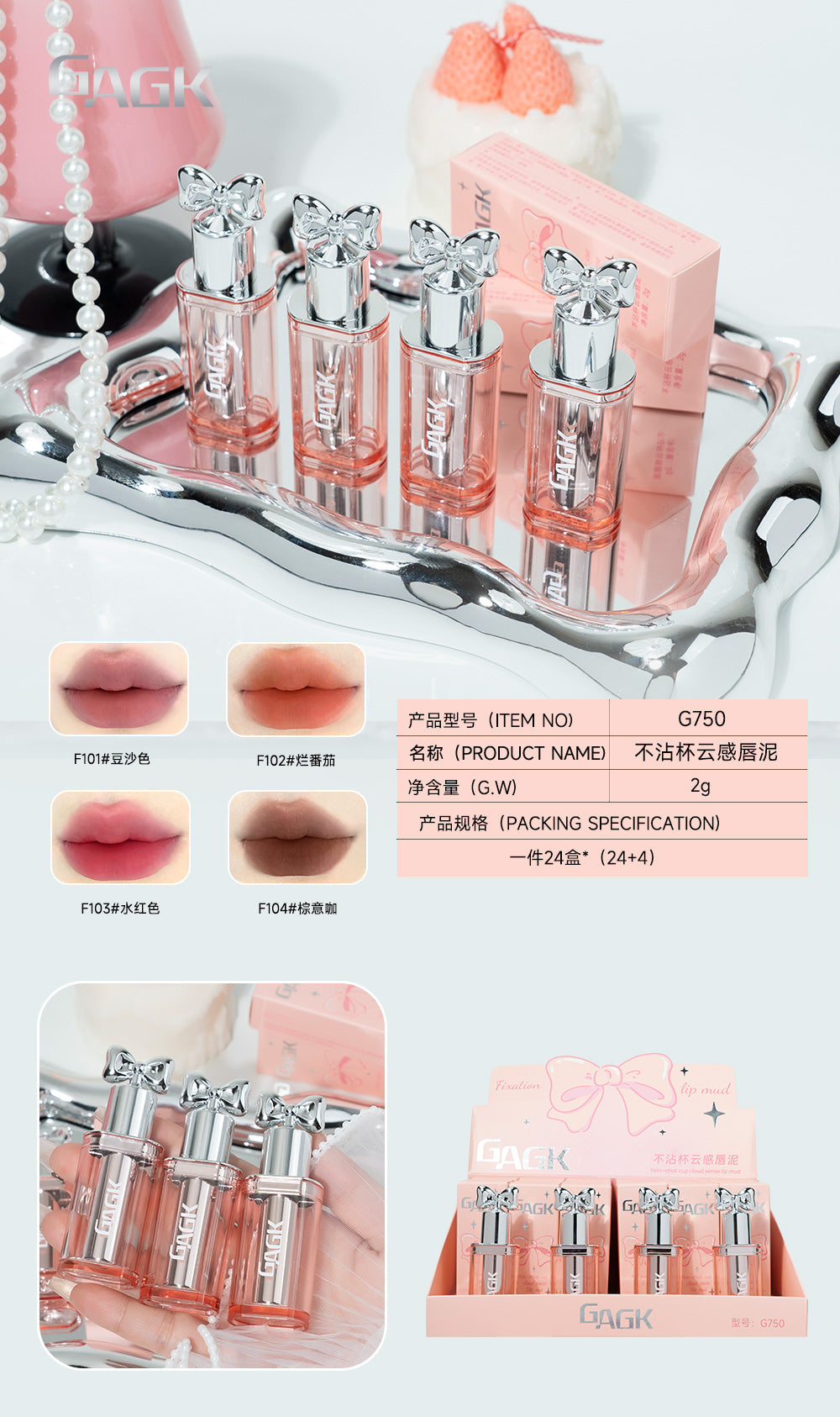 G750 - F203 #24-piece display pack non-stick cup cloud-like lip mud